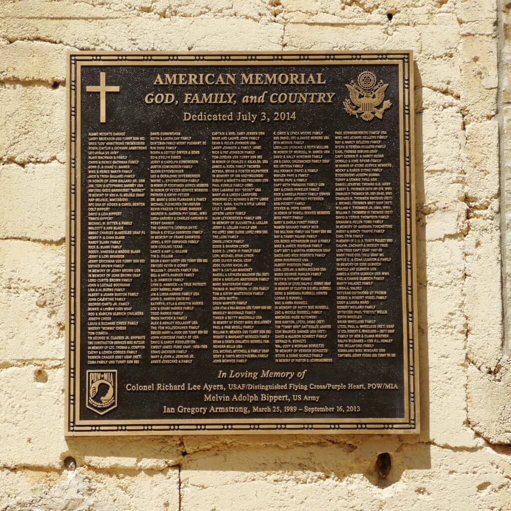 The 3rd bronze is the “Ten Commandments” representing the foundation of the memorial and 4th of July event “GOD, Family, and Country”.