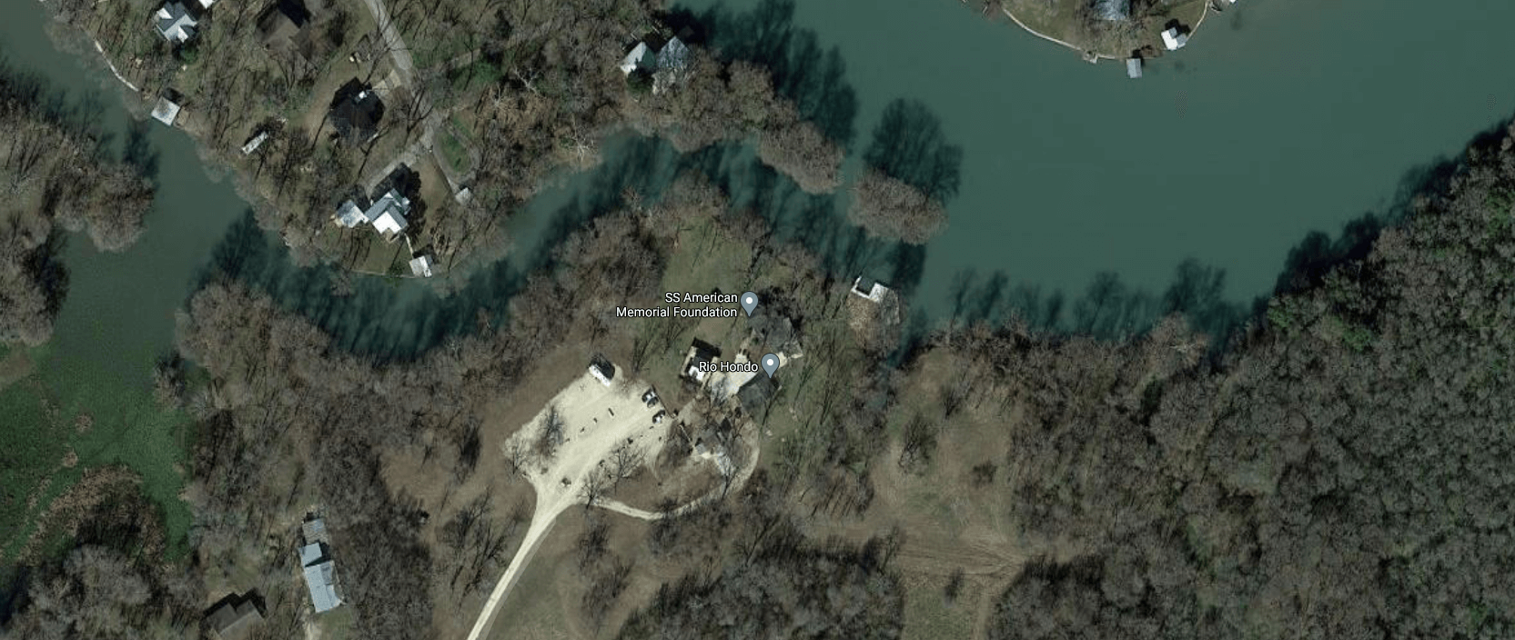 Proceed to the stoplight and turn right onto FM 725 South. Drive 2.8 miles to Naumann Road and turn left. Drive 1/2 mile to the dead-end at the ranch gate. Enter the gate code and proceed through the gate and one mile down the gravel road to the Lazy U Lodge on the Guadalupe River.